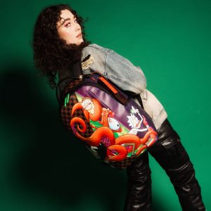 [split] PRODUCT DETAILS Exterior Dimensions: 18″ x 6″ x 11.5″ • Front zipper pocket • Side pockets • Zippered Stash pocket • Separate velour sunglass compartment • Ergonomic mesh back padding • Adjustable Straps for custom sizing • Gold zippers with metal hardware • Metal “Sprayground Authentic” badge • Slide through back sleeve connects to…