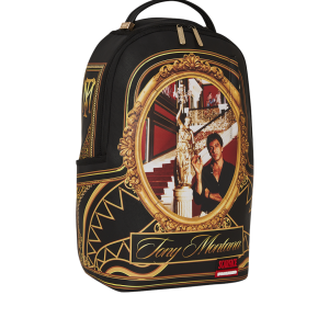 [split] OFFICIAL COLLAB WITH SCARFACE! DLXV = 100% FAUX LEATHER Exterior Dimensions: 18″ x 6″ x 11.5″ • Front zipper pocket • Side pockets • Zippered Stash pocket • Separate velour sunglass compartment • Ergonomic mesh back padding • Adjustable Straps for custom sizing • Gold zippers with metal hardware • Metal “Sprayground Authentic” badge •…