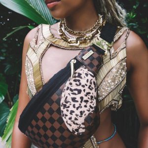 [split] Travel light & efficient with this durable yet stylish cross-body waist bag. Perfect for your phone, wallet, sunglasses, keys and other small items. AFRICAN INTELLIGENCE A.i. SANDFLOWER X SPRAYGROUND COLLABORATION. A Portion of the Proceeds from this Collaboration will go to Global Humanitarian Aid and Conservation Programs PRODUCT DETAILS Embroidered with gold thread Features…