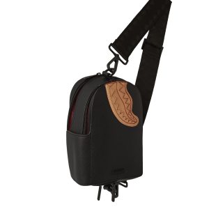 [split] Travel light & efficient with this durable yet stylish large sling. PRODUCT DETAILS 100% FAUX LEATHER Exterior H 9” x W 8.5” x D 2” Adjustable Cross Body Strap Zipper closure Interior zipped pocket 100% PVC Fabric Durable Faux Leather water-resistant fabric