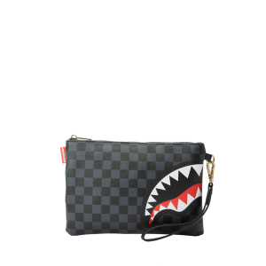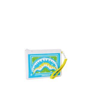 [split] LENTICULAR SHARK MOUTH Convertible Clutch “Pouchette” Pouch with removable wristlet strap, Handle on front panel, Zip Closure1 interior pocket7″ X 10″ X 0.25″