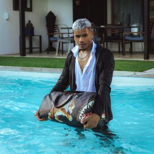 [split] PRODUCT DETAILS Dimensions: 20″ x 10″ x 10.75″ • Metal zipper pocket• Back Zippers •Zippered sneaker pocket • gold zippers • Adjustable Straps for custom sizing •Metal Zippers with Metal Hardware • bag of Sprayground money Fabric Durable Vegan Leather water-resistant fabric