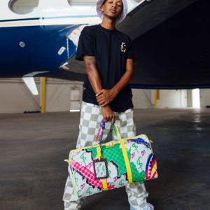[split] PRODUCT DETAILS A fun quirky capsule with dye cut clouds and lightning bolts in classic Sprayground silhouettes. Accented with blue embroidery and yellow lightning bolts. 100% FAUX LEATHER Dimensions: 20″ x 10″ x 10.75″ • Metal zipper pocket• Back Zippers •Zippered sneaker pocket • gold zippers • Adjustable Straps for custom sizing •Metal Zippers with Metal…
