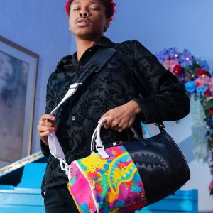 [split] SPRAYGROUND X FORMULA 1 OFFICIAL COLLAB PRODUCT DETAILS Dimensions: 20″ x 10″ x 10.75″ • Metal zipper pocket• Back Zippers •Zippered sneaker pocket • gold zippers • Adjustable Straps for custom sizing •Metal Zippers with Metal Hardware • bag of Sprayground money Fabric Durable Vegan Leather water-resistant fabric
