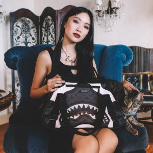 [split] PRODUCT DETAILS Exterior: Dimensions: 10″ x 10″ x 18″ • Double zipper opening • Top handle • Removable side handle • Gold self-lock zippers with metal hardware • Zippered Stash pocket • Padded shoulder strap • Non-skid feet • Quick access opening • Mesh ventilation Tether: Internal safety tether Tether should not be worn during travel Only use during passive…