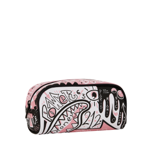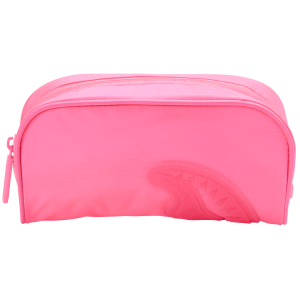 [split] Small pouch perfect for anything from pencils to make up Dimensions: 4″ x 2.75″ x 8″ • Pink zipper top opening Fabric: Durable 900D Polyester water-resistant fabric with neon rubber sharkmouth Make sure to pick up the matching backpack to complete the look!