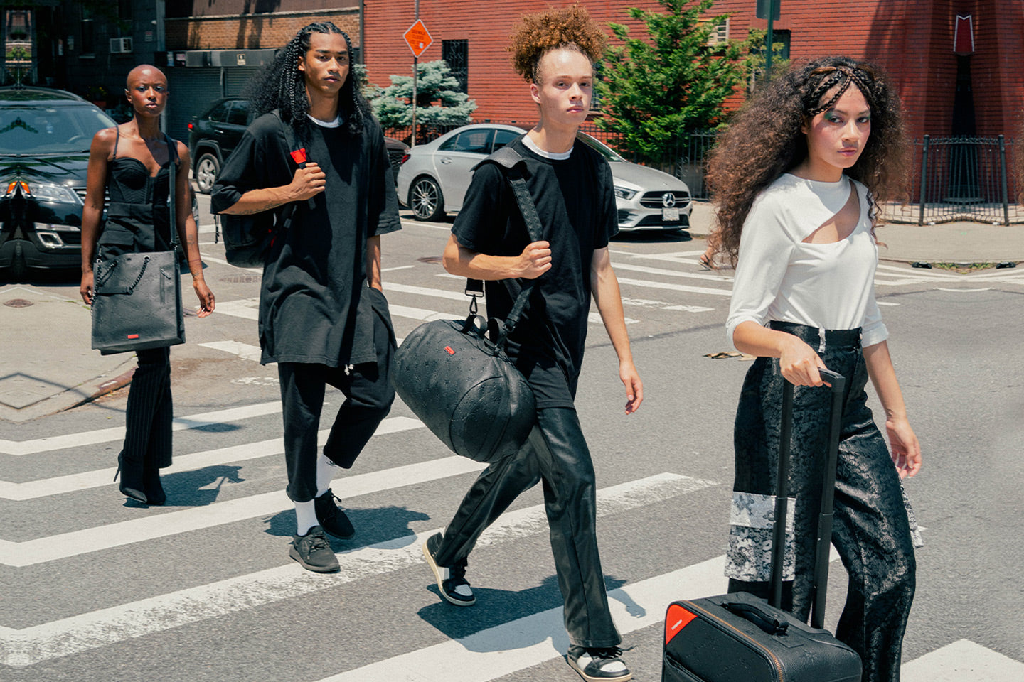 The 24/7 collection imbues only the finest features of vegan leather, sleek hardware, embossed sprayburst pattern so you can go into stealth mode!
