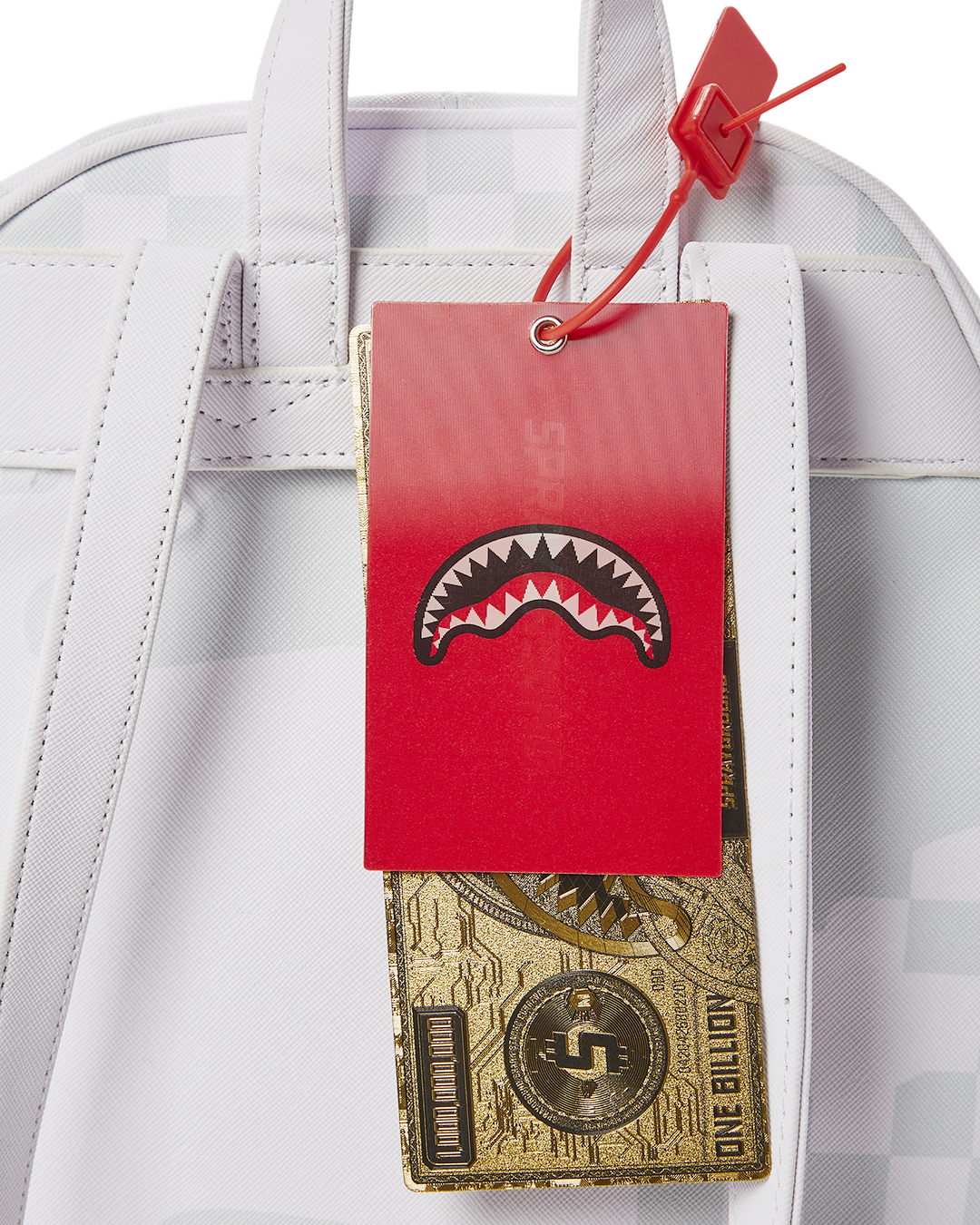 Dimensions: 10″ x 5″ x 11.5″ • Two large main zippered compartments • Side pockets • Zippered Stash pocket • Adjustable straps for custom sizing • Gold zippers with metal hardware