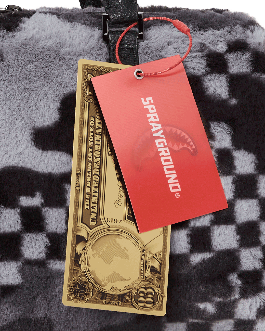 Dimensions: 8″ x 7.5″ x 13″• Metal zipper pocket• Back Zippers •Zippered sneaker pocket • gold zippers • Adjustable Straps for custom sizing •Metal Zippers with Metal Hardware • bag of Sprayground money
