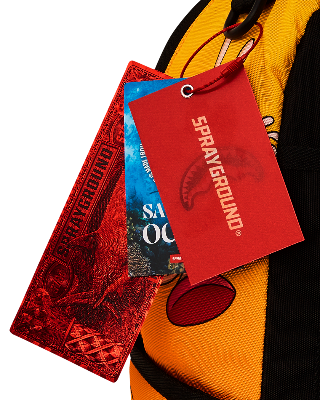 Dimensions: 18″ x 6″ x 11.5″ • Front zipper pocket • Side pockets • Zippered Stash pocket • Separate velour sunglass compartment • Ergonomic mesh back padding • Adjustable Straps for custom sizing • Gold zippers with metal hardware • Metal “Sprayground Authentic” badge • Slide through back sleeve connects to carry-on luggage to free your hands