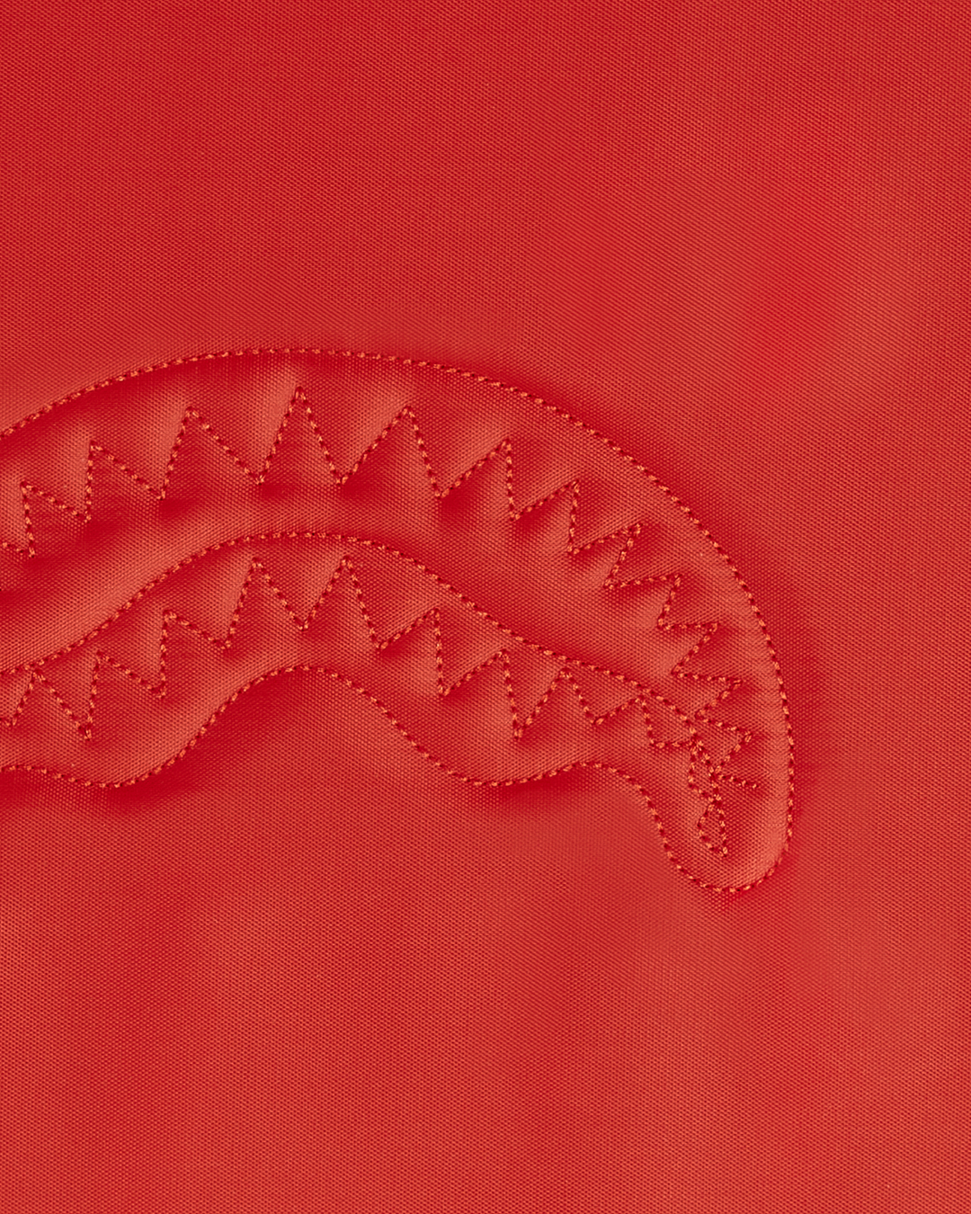 Customized Red Satin lining with Embossed Shark logo and Vegan leather trims