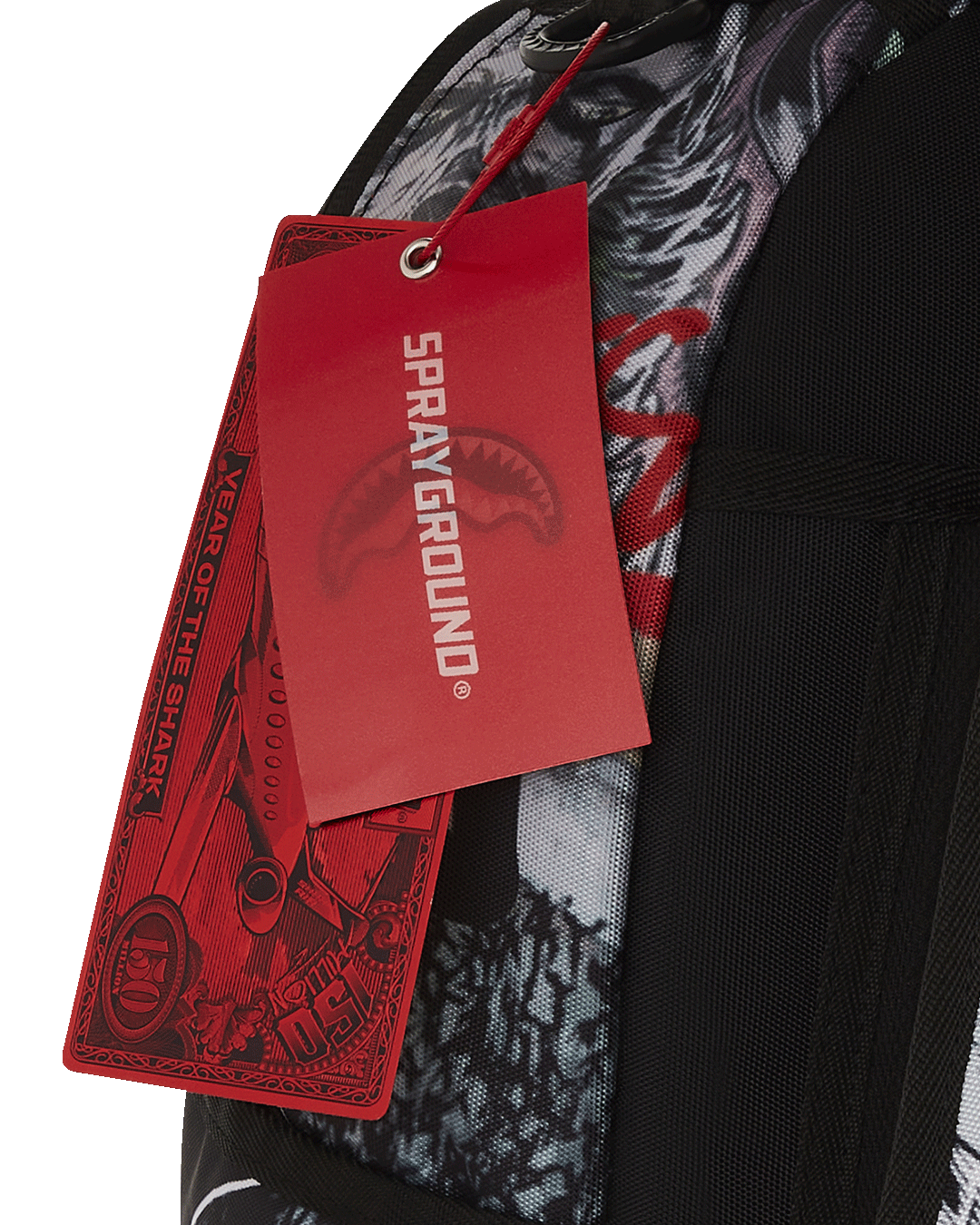 Dimensions: 18″ x 6″ x 11.5″ • Front zipper pocket • Side pockets • Zippered Stash pocket • Separate velour sunglass compartment • Ergonomic mesh back padding • Adjustable Straps for custom sizing • Gold zippers with metal hardware • Metal “Sprayground Authentic” badge • Slide through back sleeve connects to carry-on luggage to free your hands