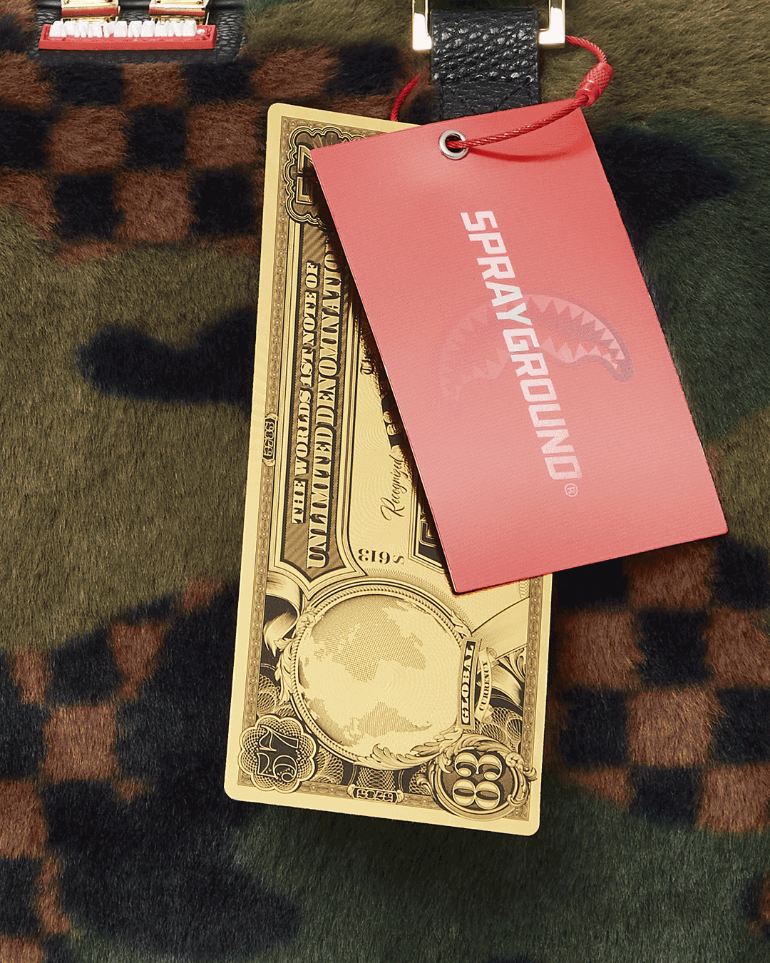 Dimensions: 20″ x 10″ x 10.75″ • Metal zipper pocket• Back Zippers •Zippered sneaker pocket • gold zippers • Adjustable Straps for custom sizing •Metal Zippers with Metal Hardware • bag of Sprayground money