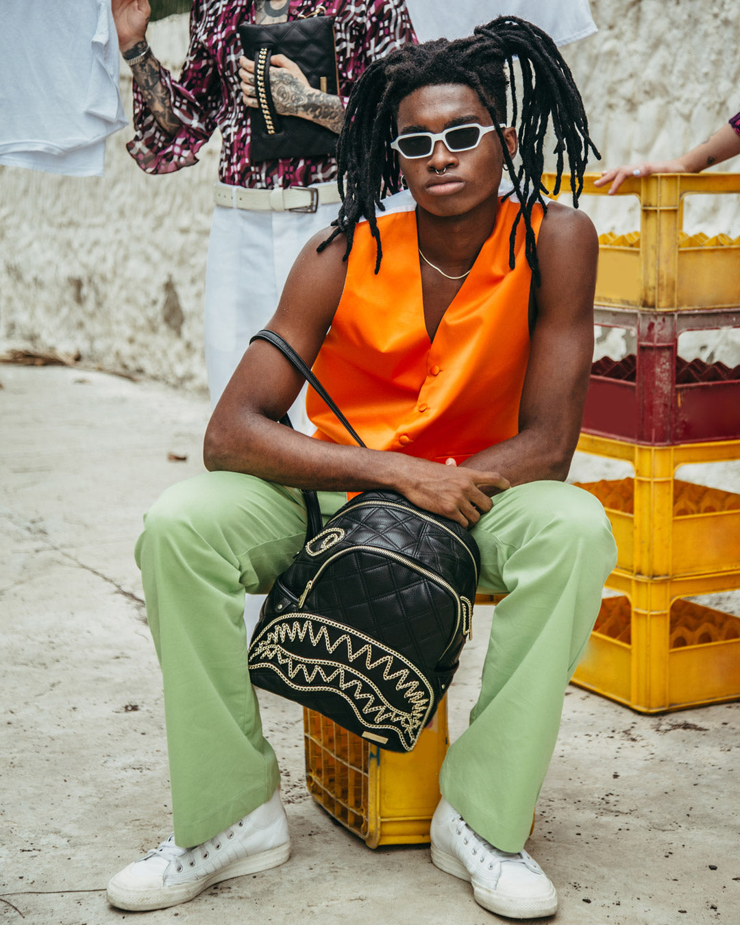 NOIR QUILT GOLD CHAIN SHARK SAVAGE BACKPACK