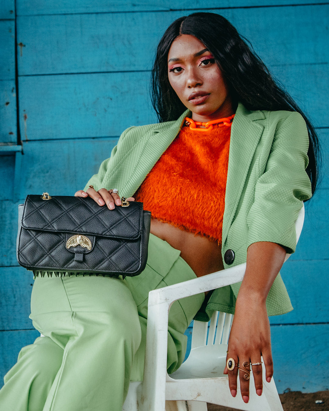 Tuck in the chain to hold as a clutch