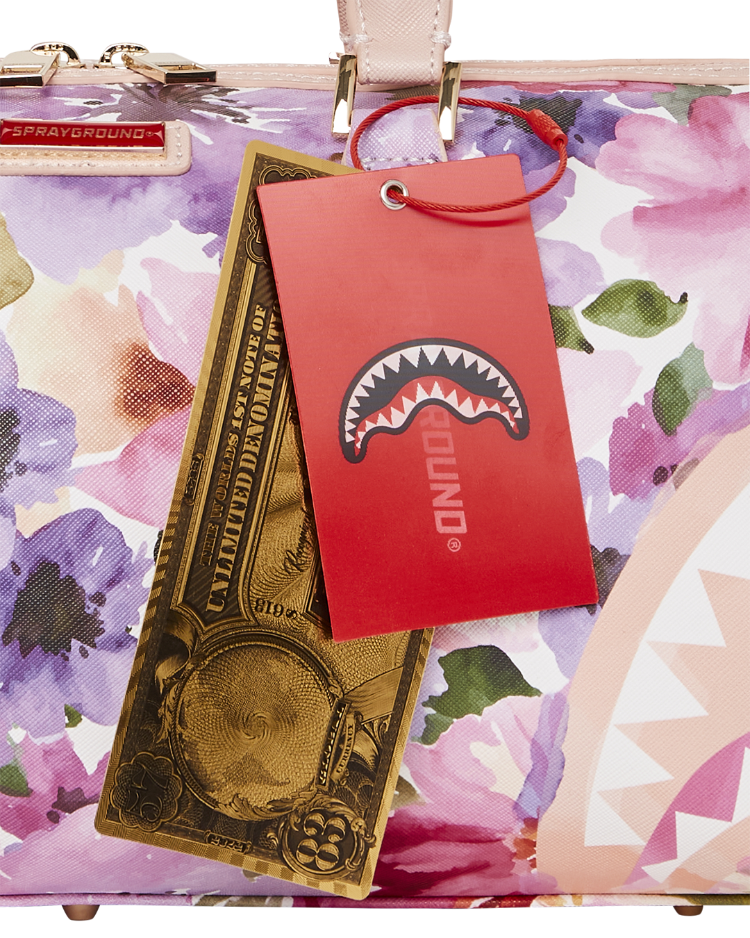 Dimensions: 8″ x 7.5″ x 13″ • Metal zipper pocket• Back Zippers •Zippered sneaker pocket • gold zippers • Adjustable Straps for custom sizing •Metal Zippers with Metal Hardware • bag of Sprayground money