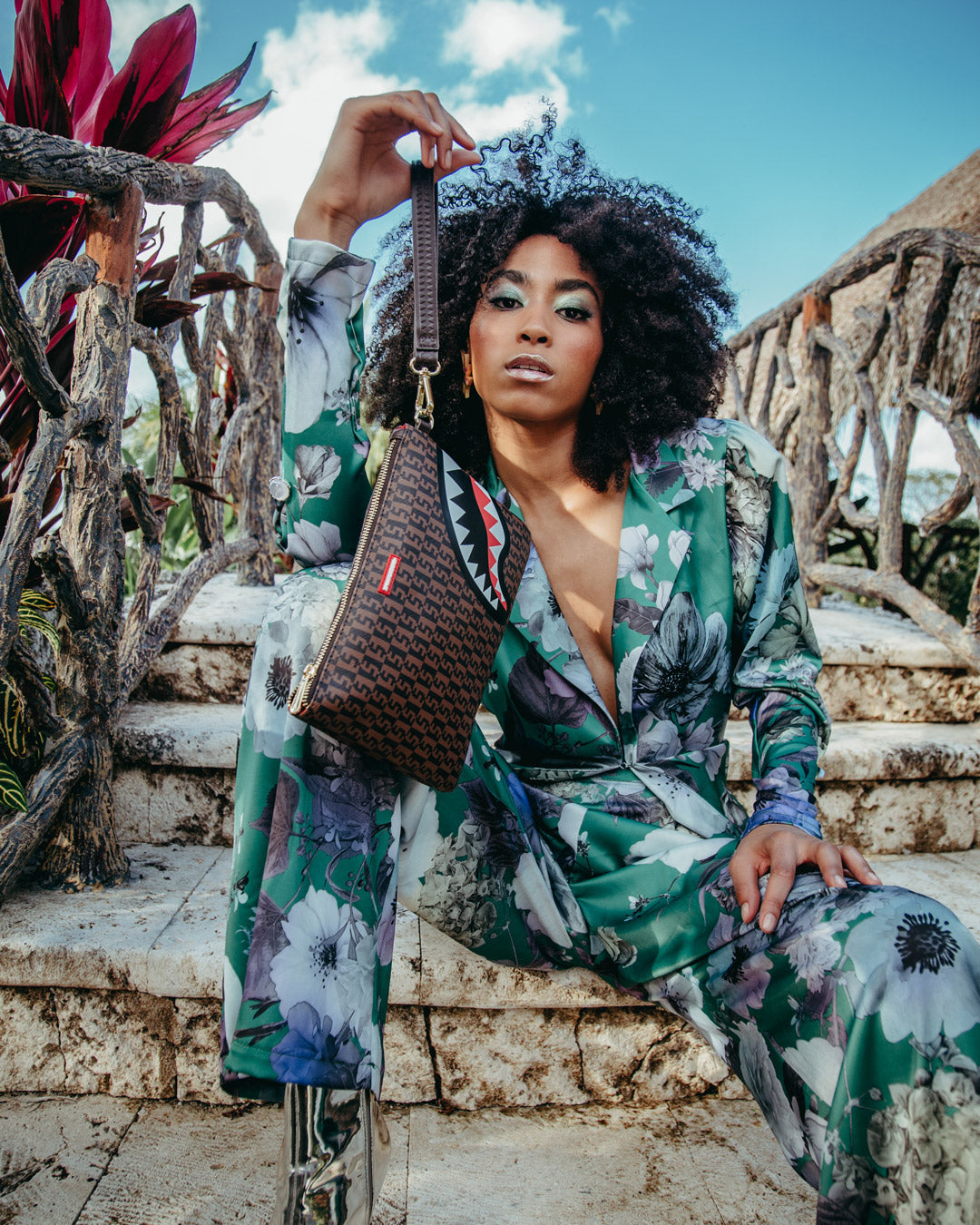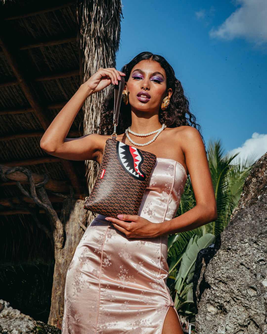 Pouch with removable wristlet strap, Handle on front panel, Zip Closure