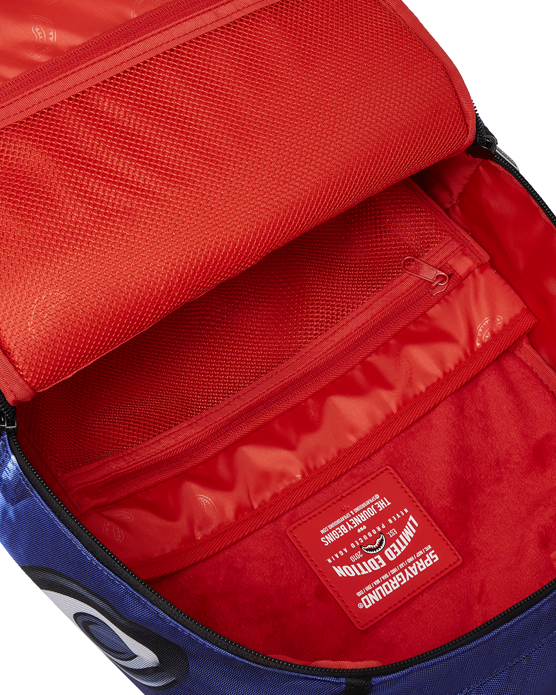 Dimensions: 18″ x 6″ x 11.5″ • Front zipper pocket • Side pockets • Zippered Stash pocket • Separate velour sunglass compartment • Ergonomic mesh back padding • Adjustable Straps for custom sizing • Gold zippers with metal hardware • Metal “Sprayground Authentic” badge • Slide through back sleeve connects to carry-on luggage to free your hands