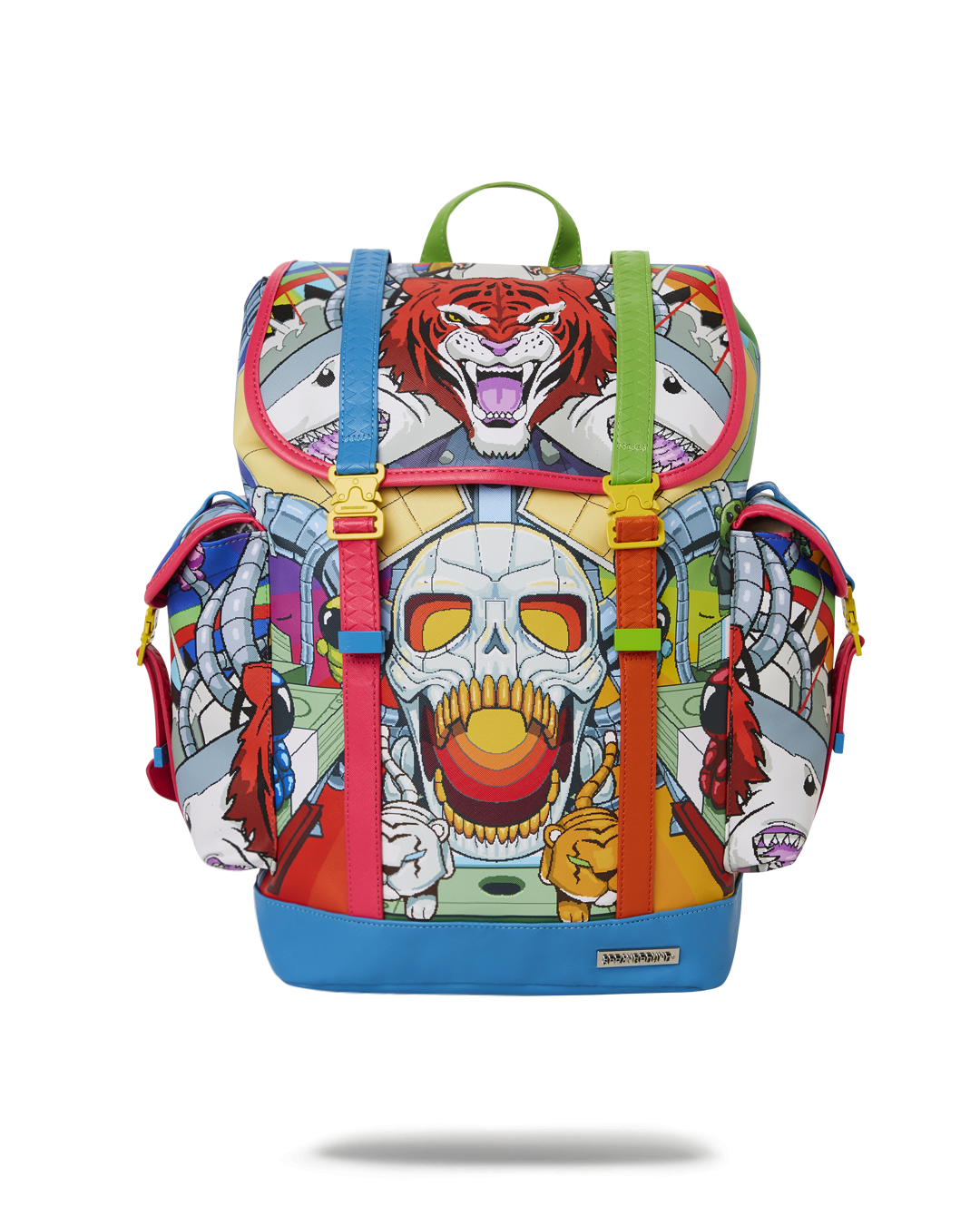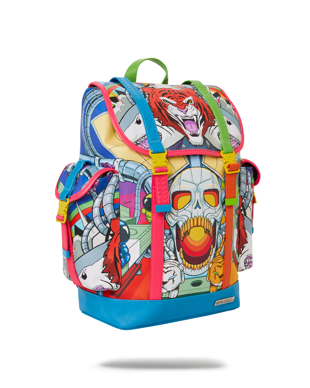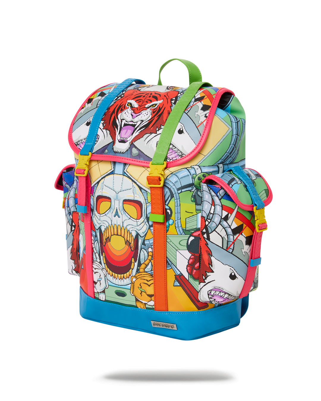 Dimensions: 18″ x 6″ x 11.5″ • Top Flap opening w/ adjustable metal enamel buckles and drawstring closure • Two side cargo pockets with metal enamel buckles and drawstring closures • Zippered Stash pocket • Ergonomic mesh back padding • Adjustable Straps for custom sizing • Embossed logo on back strap