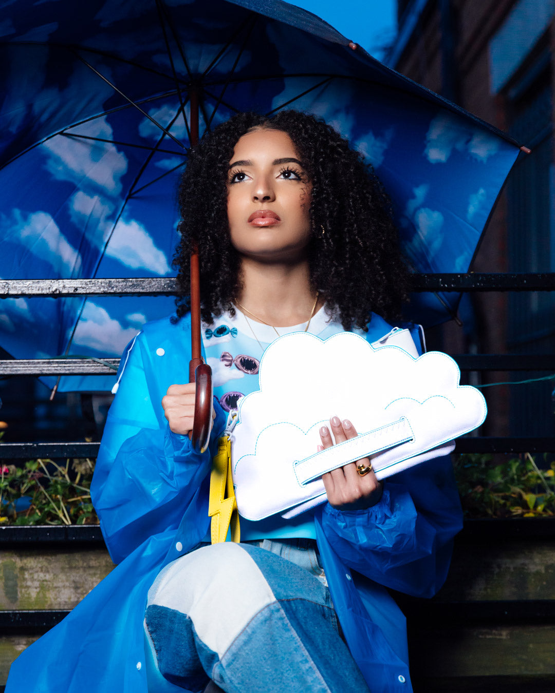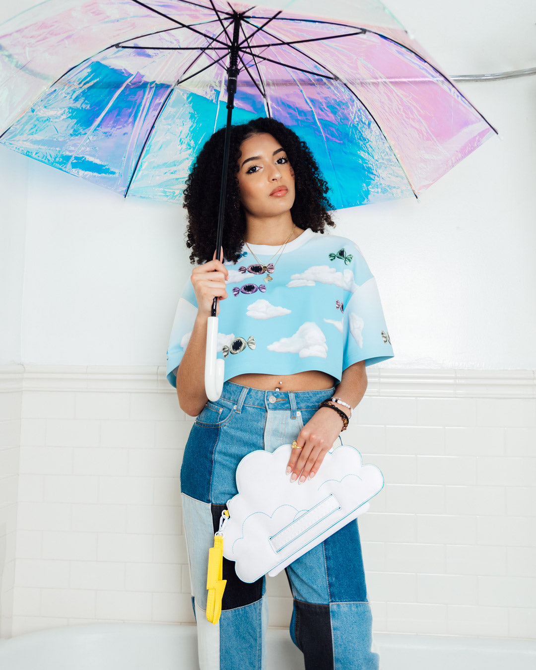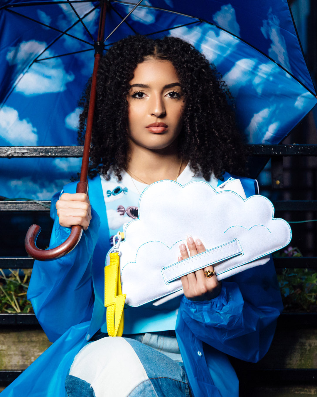 A fun quirky capsule with dye cut clouds and lightning bolts in classic Sprayground silhouettes.
