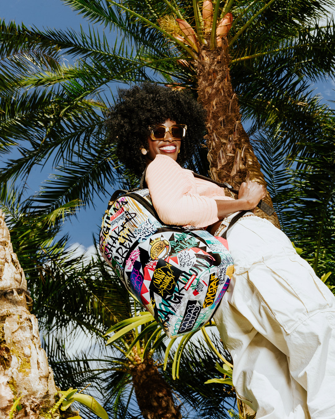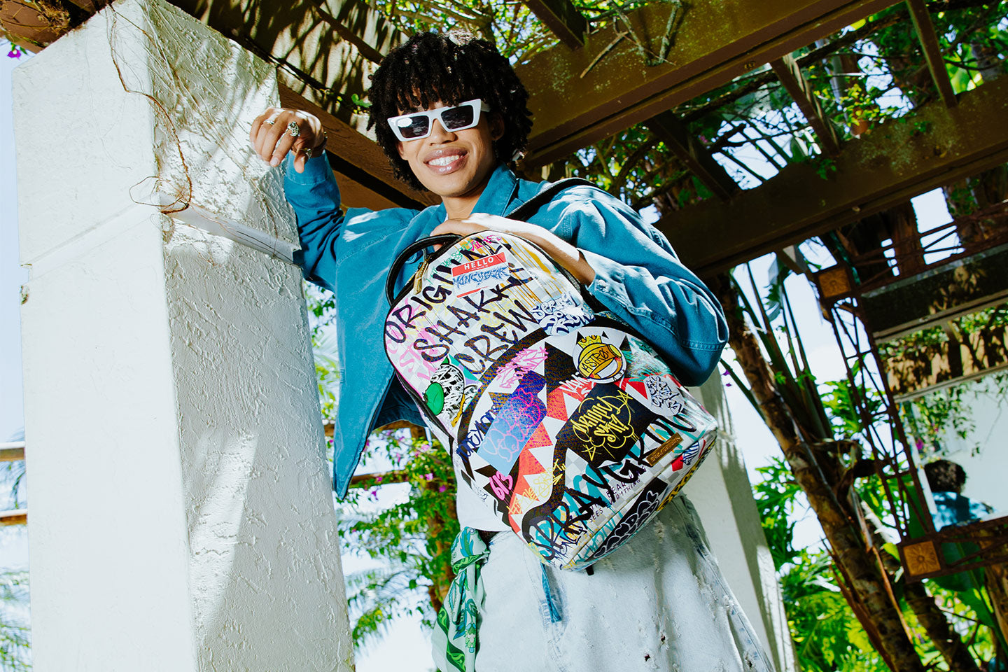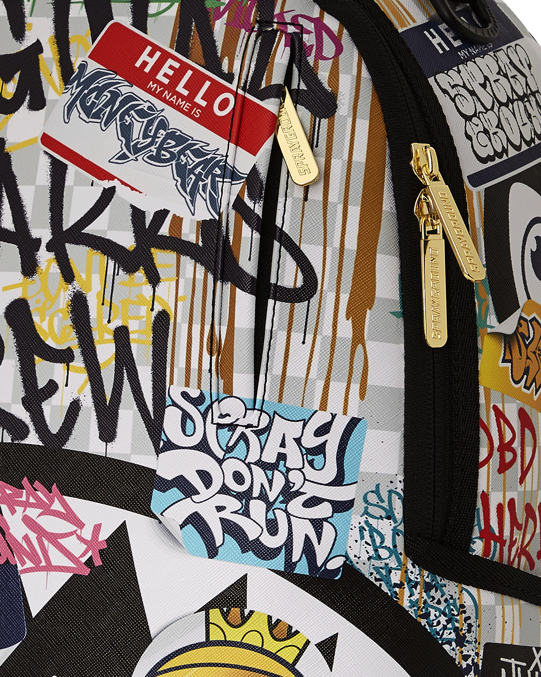 Dimensions: 18″ x 6″ x 11.5″ • Front zipper pocket • Side pockets • Zippered Stash pocket • Separate velour sunglass compartment • Ergonomic mesh back padding • Adjustable Straps for custom sizing • Gold zippers with metal hardware • Metal “Sprayground Authentic” badge • Slide through back sleeve connects to carry-on luggage to free your hands