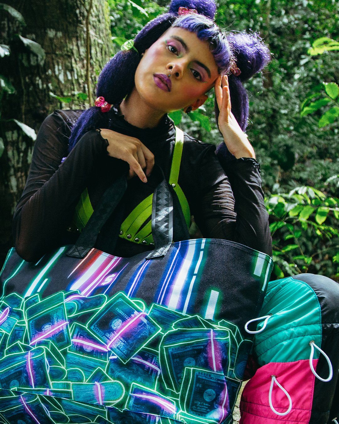 SPRAYGROUND 2077. The Neon Lights of Shark City Glow at Night with The New Limited Edition Crypto Stacks & Nite Dragon Backpacks, Luggage, Tote, Pouch & FaceMask. GLOWS NOW!