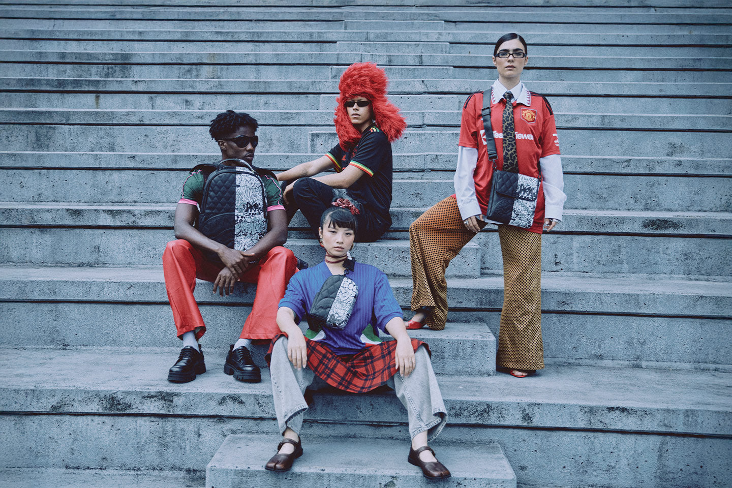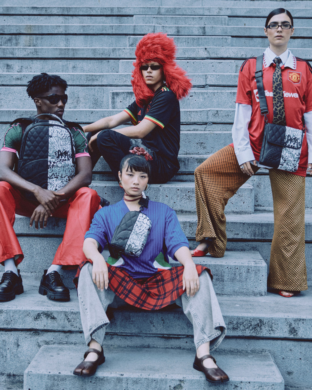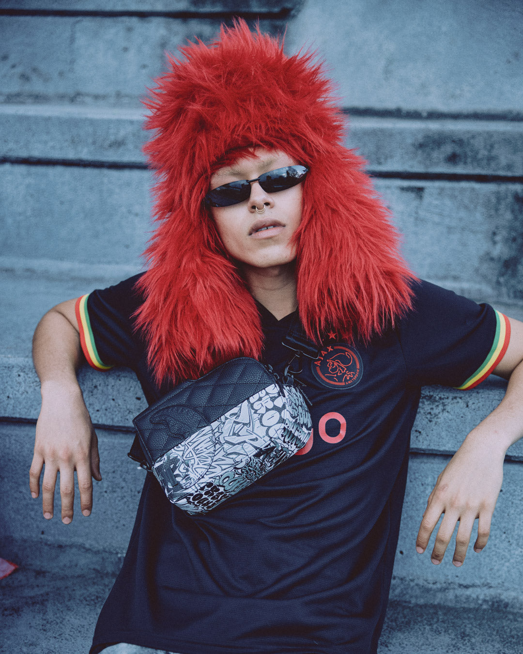 1/2 Quilted  & 1/2 Printed PVC with Cut & Sewn shark mouth details and matte black hardwareÂ