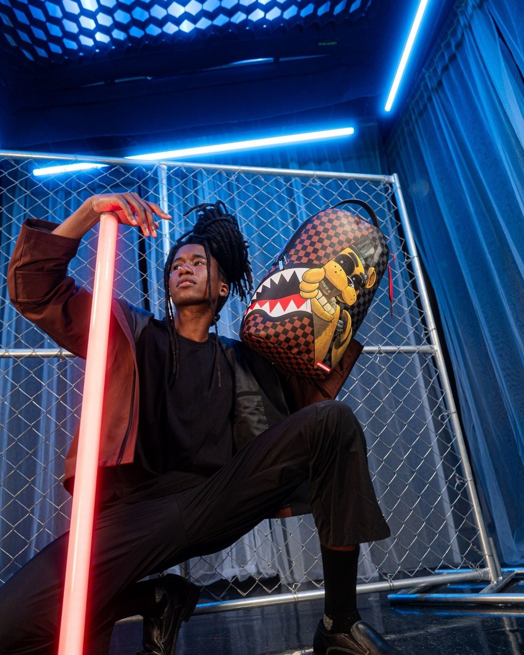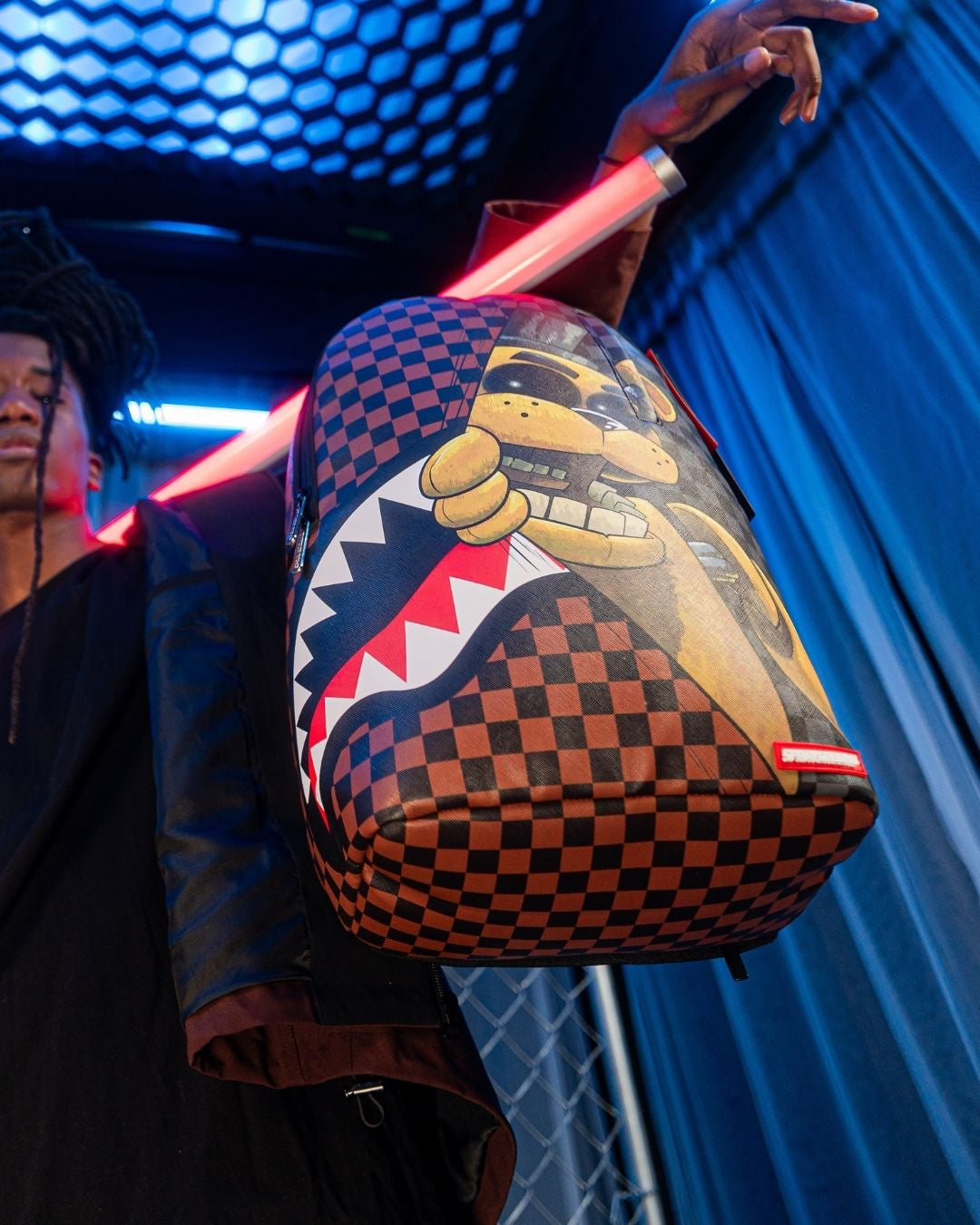 Dimensions: 18″ x 6″ x 11.5″ • Front zipper pocket • Side pockets • Zippered Stash pocket • Separate velour sunglass compartment • Ergonomic mesh back padding • Adjustable Straps for custom sizing • Gold zippers with metal hardware • Metal “Sprayground Authentic” badge • Slide through back sleeve connects to carry-on luggage to free your hands