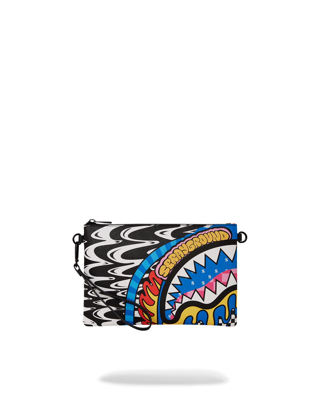 Pouch with removable wristlet strap, Handle on front panel, Zip Closure
