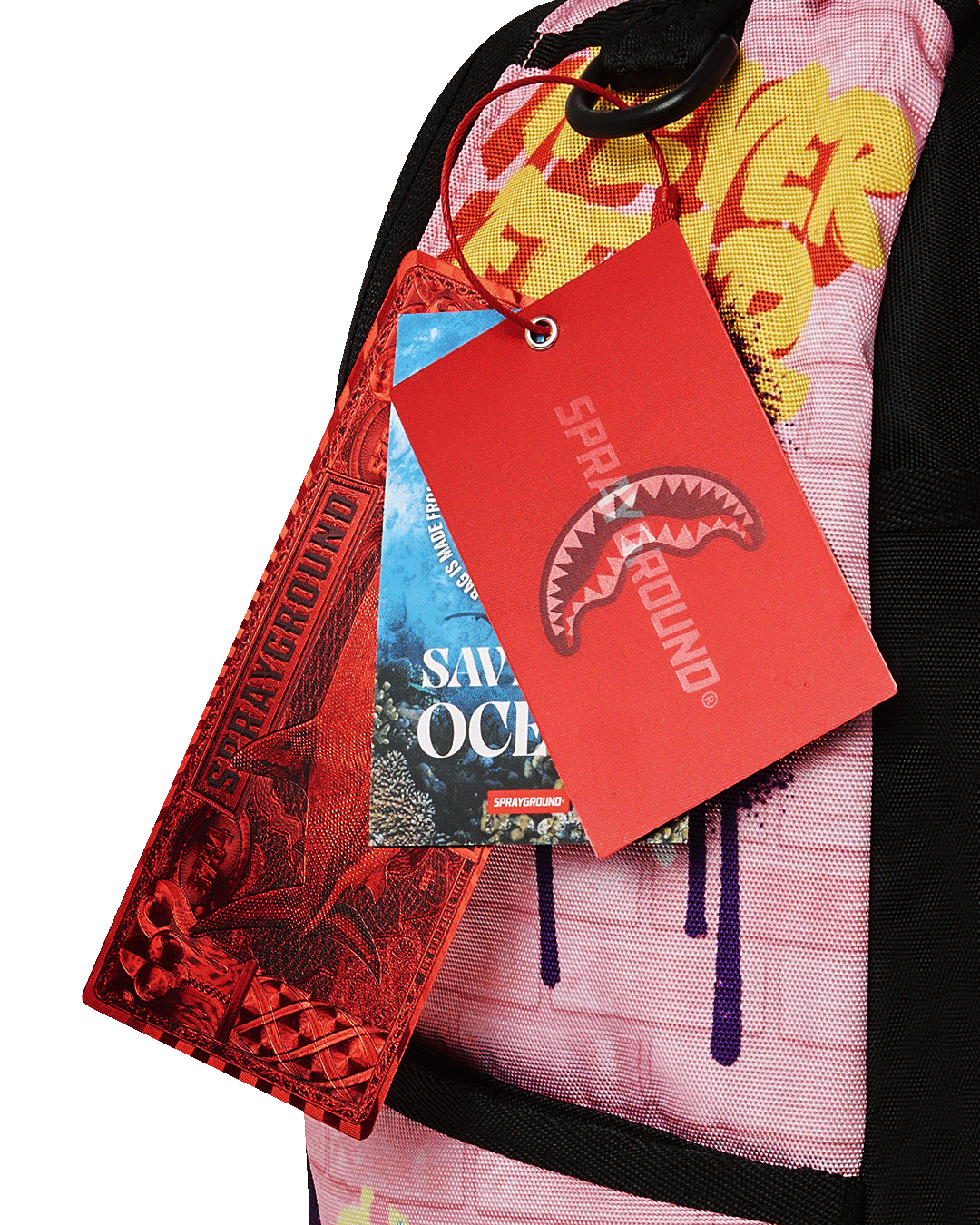 Dimensions: 18″ x 6″ x 11.5″ • Front zipper pocket • Side pockets • Zippered Stash pocket • Separate velour sunglass compartment • Ergonomic mesh back padding • Adjustable Straps for custom sizing • Gold zippers with metal hardware • Metal “Sprayground Authentic” badge • Slide through back sleeve connects to carry-on luggage to free your hands