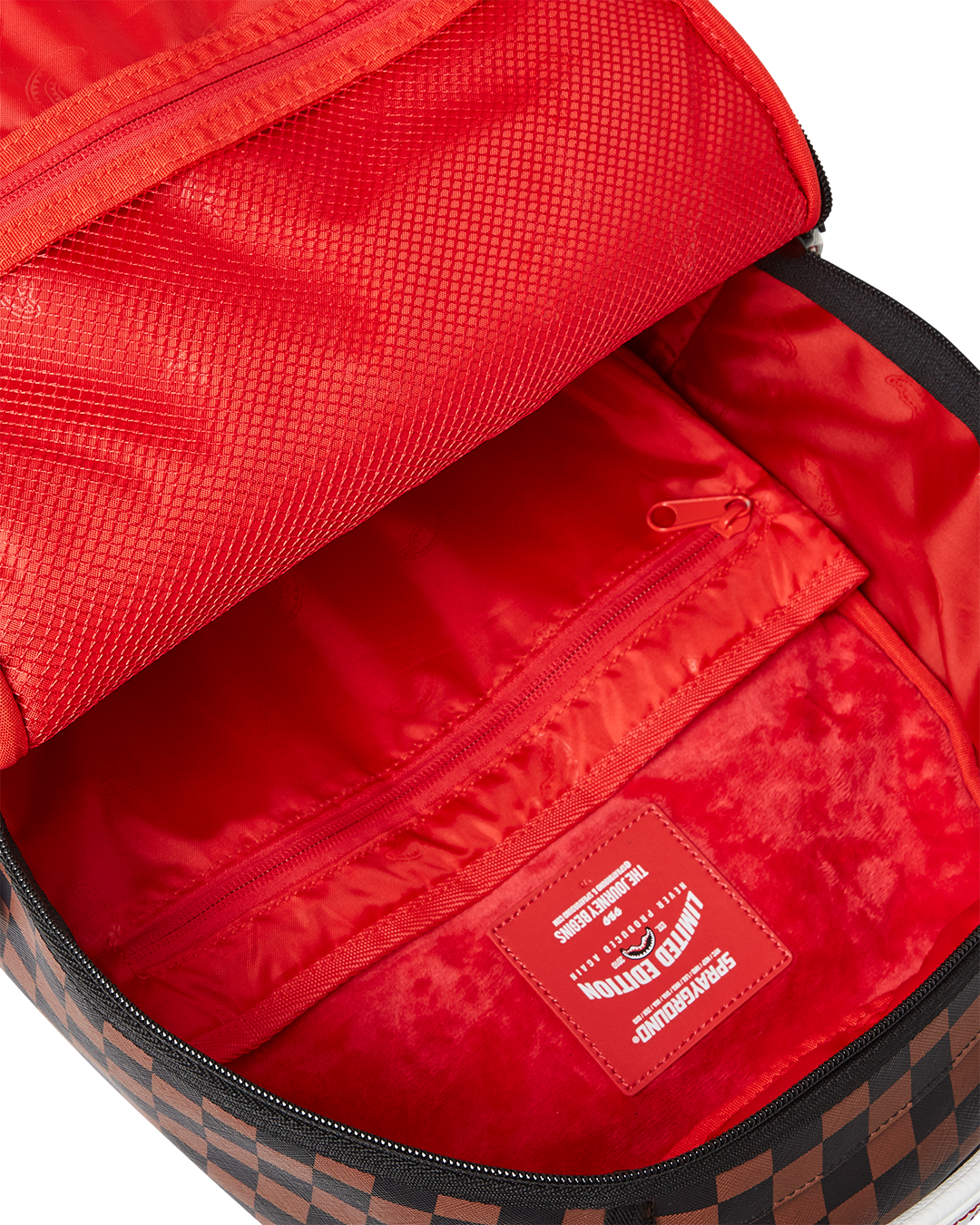 Dimensions: 18″ x 6″ x 11.5″ • Front zipper pocket • Side pockets • Zippered Stash pocket • Separate velour sunglass compartment • Ergonomic mesh back padding • Adjustable Straps for custom sizing • Gold zippers with metal hardware • Metal “Sprayground Authentic” badge • Slide through back sleeve connects to carry-on luggage to free your hands