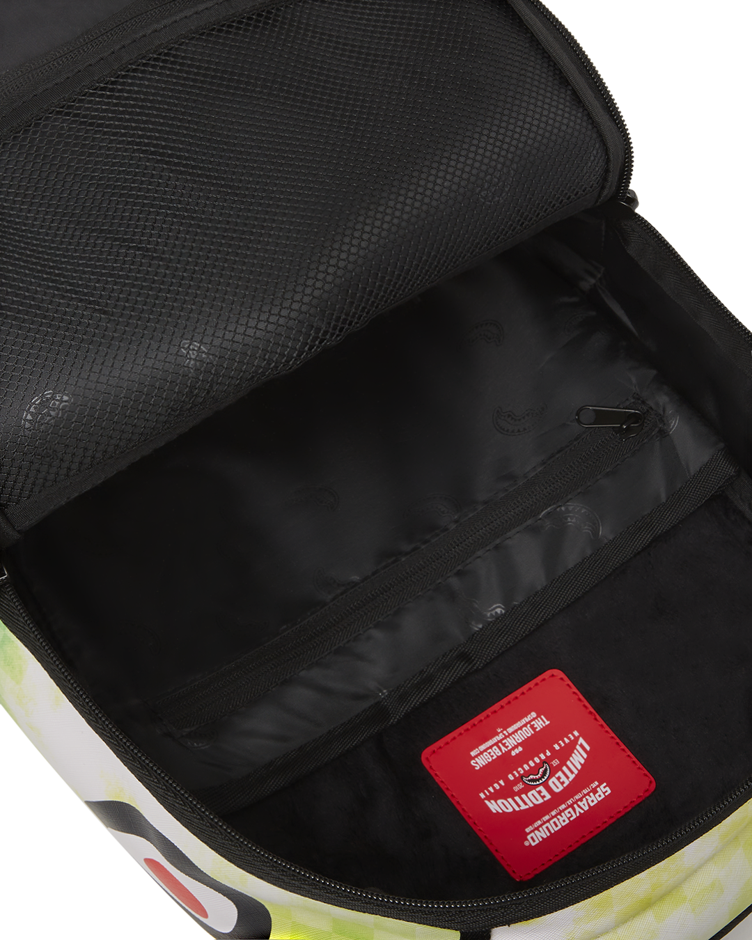 Dimensions: 18″ x 6″ x 11.5″ • Front zipper pocket • Side pockets • Zippered Stash pocket • Separate velour sunglass compartment • Ergonomic mesh back padding • Adjustable Straps for custom sizing • Gold zippers with metal hardware • Metal “Sprayground Authentic” badge • Slide through back sleeve connects to carry-on luggage to free your hands