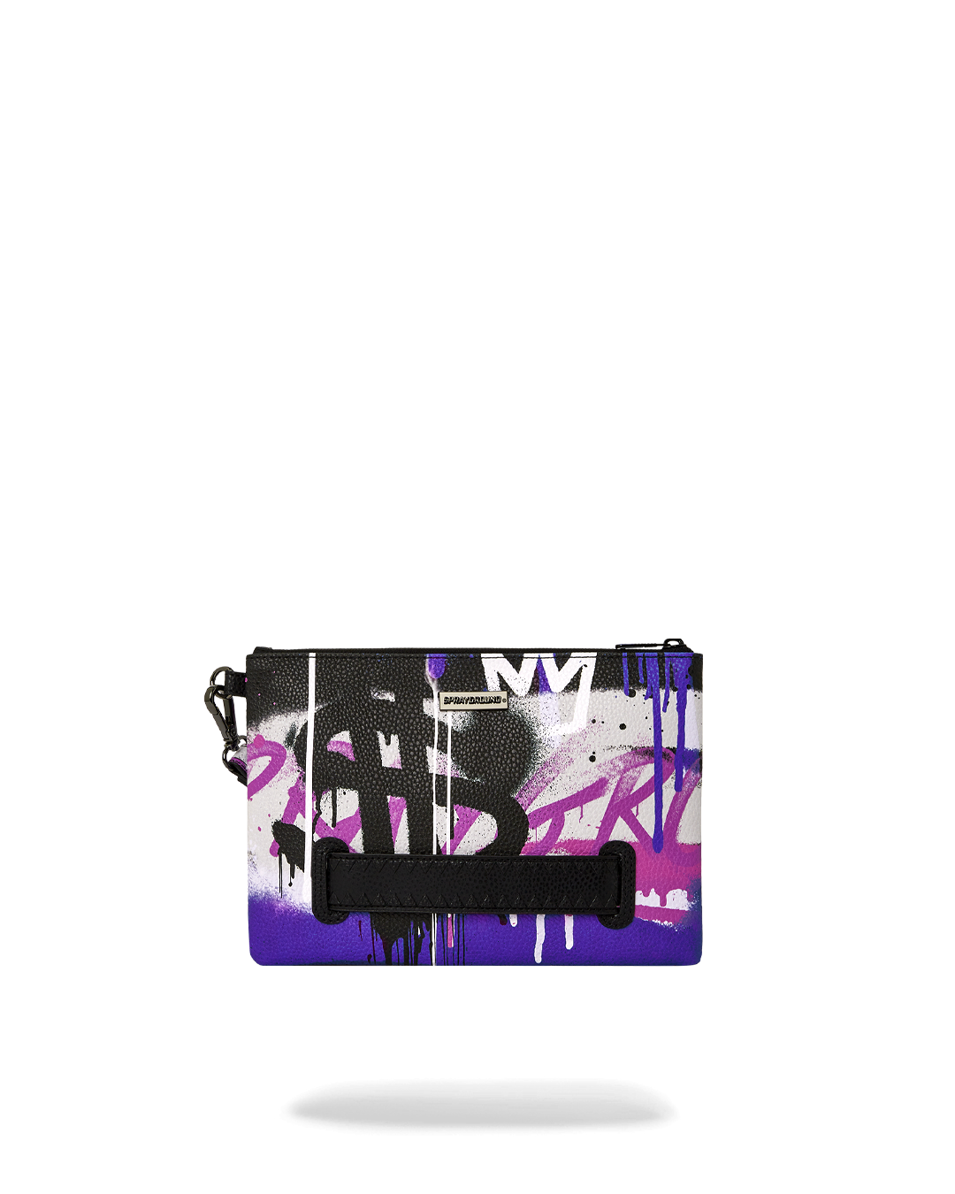 Pouch with removable wristlet strap, Handle on front panel, Zip Closure