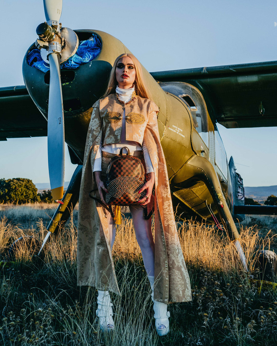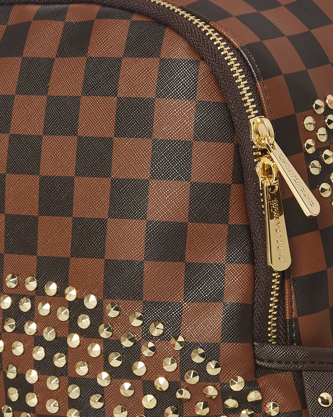 Dimensions: 10″ x 5″ x 11.5″ • Two large main zippered compartments • Side pockets • Zippered Stash pocket • Adjustable straps for custom sizing • Gold zippers with metal hardware
