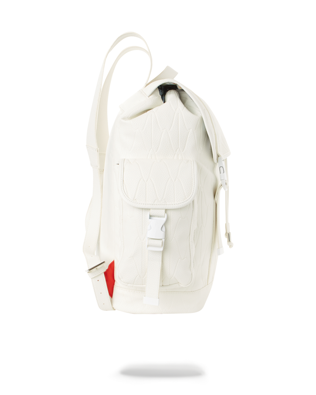 Dimensions: 18″ x 6″ x 11.5″ • Top Flap opening w/ adjustable metal enamel buckles and drawstring closure • Two side cargo pockets with metal enamel buckles and drawstring closures • Zippered Stash pocket • Ergonomic mesh back padding • Adjustable Straps for custom sizing • Embossed logo on back strap