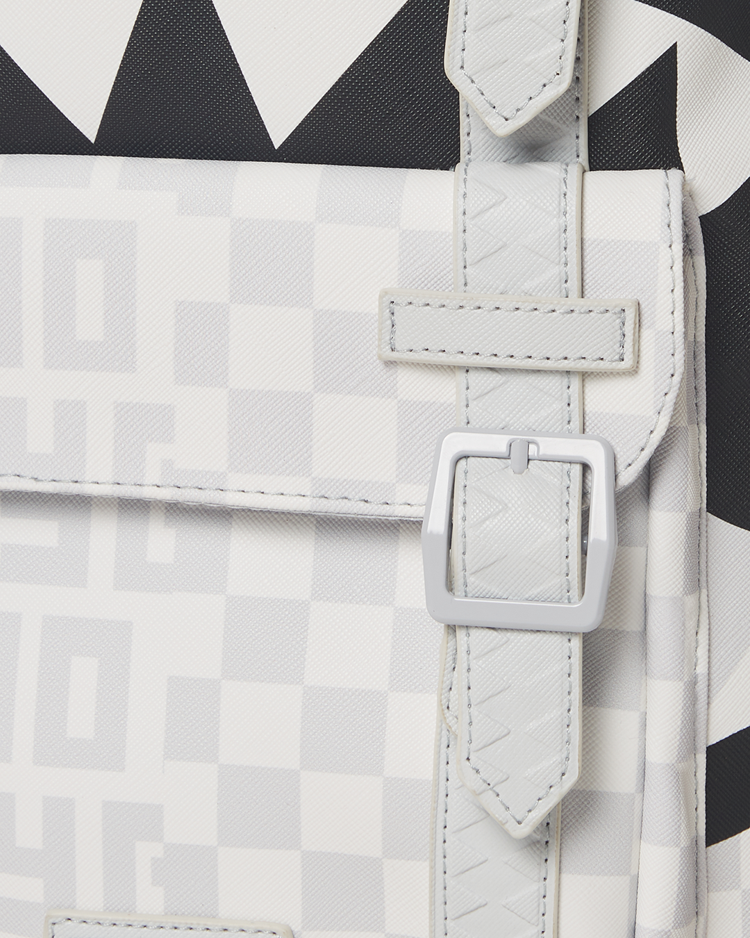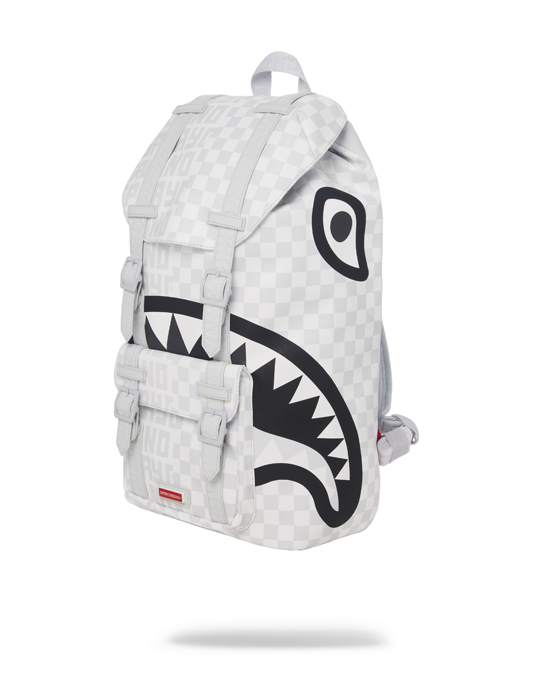 Dimensions: 20.5″ x 5″ x 11.5″ • Top Flap opening w/ adjustable magnetic snap buckle closure • Draw-string closure • Front pocket with adjustable magnetic snap buckle closure • Ergonomic mesh back padding • Adjustable straps for custom sizing • Nylon zippers with metal hardware • Embossed sharkteeth straps • Slide through back sleeve connects to carry-on luggage to free your hands