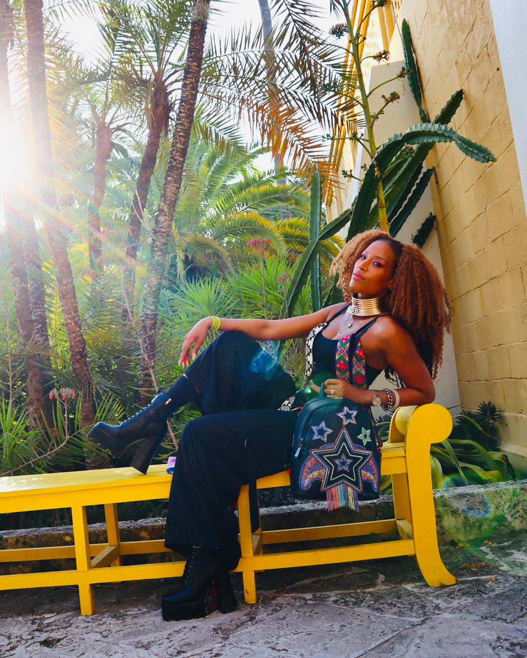 The coveted collection features the standout design; an eye-catching star print that is crafted from beads and is embedded perfectly on each of the items in this capsule . The Ai collection has been known for, vibrant purples, reds and yellows that speak to the colorful inspirations of Afro-futuristic art and culture. The exquisitely crafted beaded design speaks to this as well and is beautifully cascading off of Sprayground’s iconic collectible art piece – the shark mouth print on both backpacks.