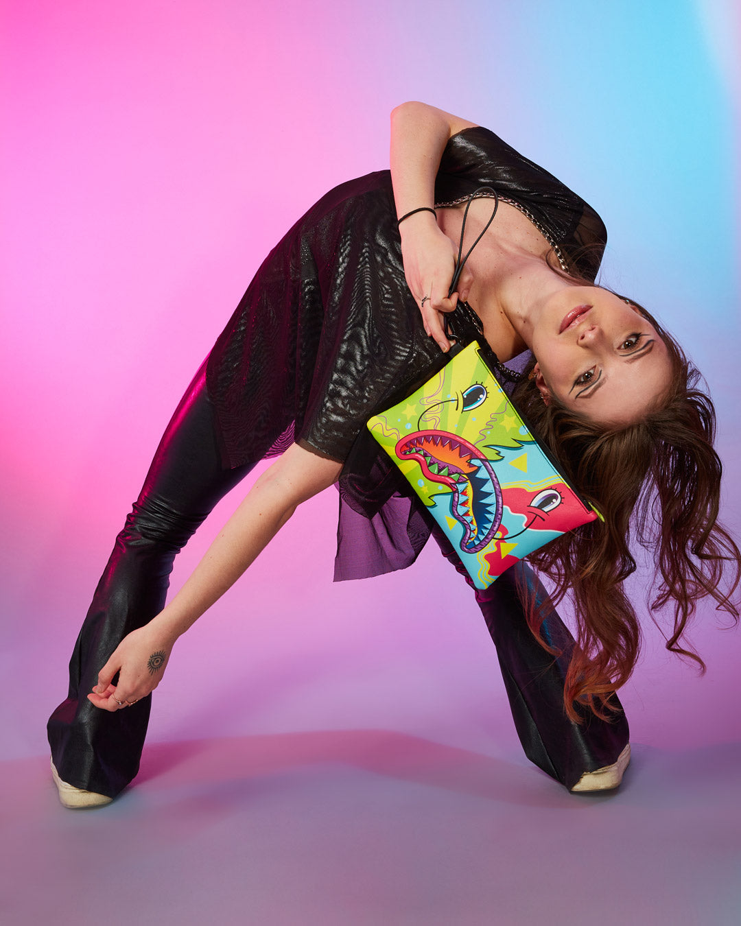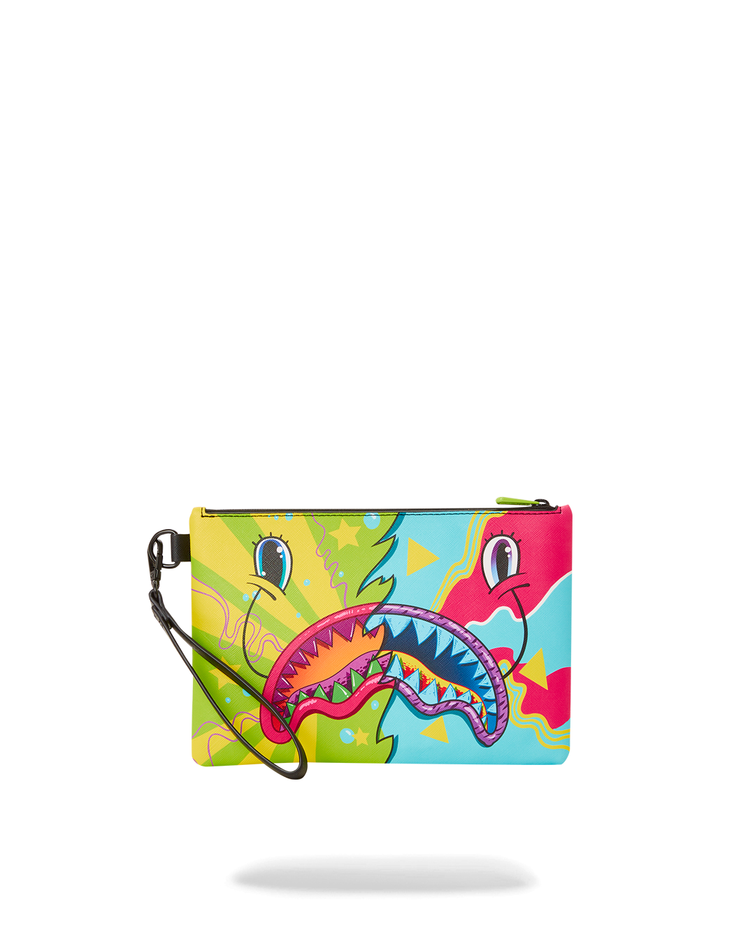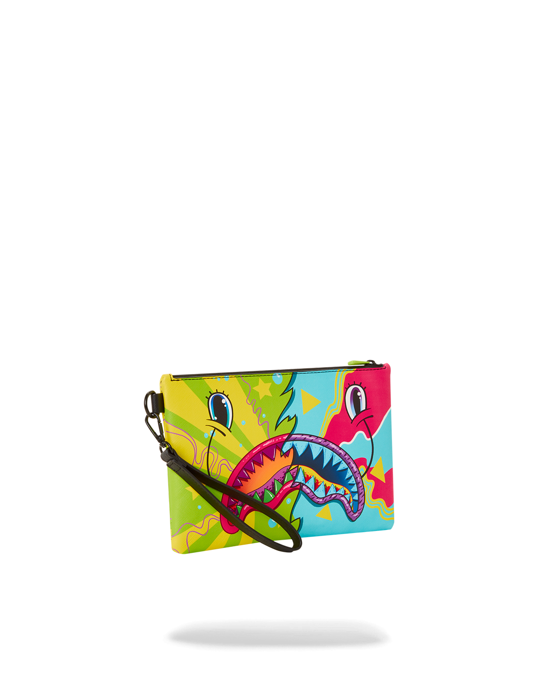 Pouch with removable wristlet strap, Handle on front panel, Zip Closure
