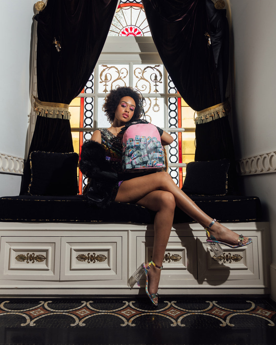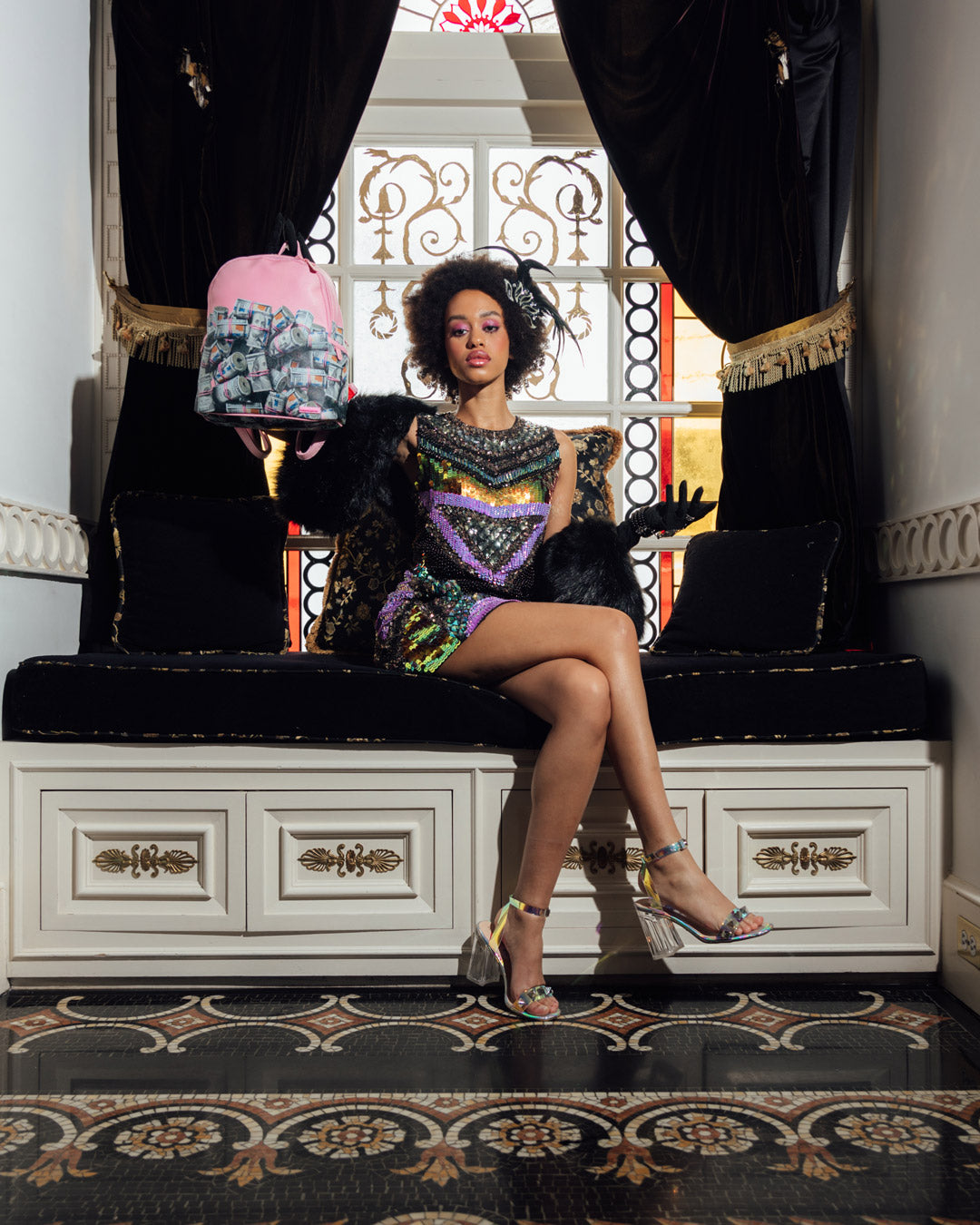 Dimensions: 10″ x 5″ x 11.5″ • Two large main zippered compartments • Side pockets • Zippered Stash pocket • Adjustable straps for custom sizing • Gold zippers with metal hardware