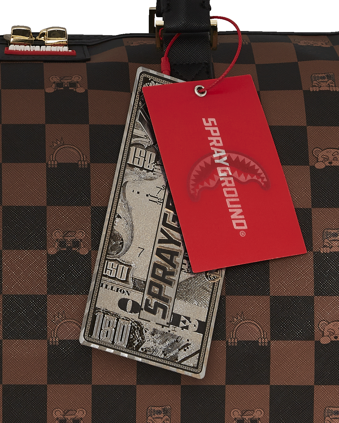 Dimensions: 20″ x 10″ x 10.75″ • Metal zipper pocket• Back Zippers •Zippered sneaker pocket • gold zippers • Adjustable Straps for custom sizing •Metal Zippers with Metal Hardware • bag of Sprayground money