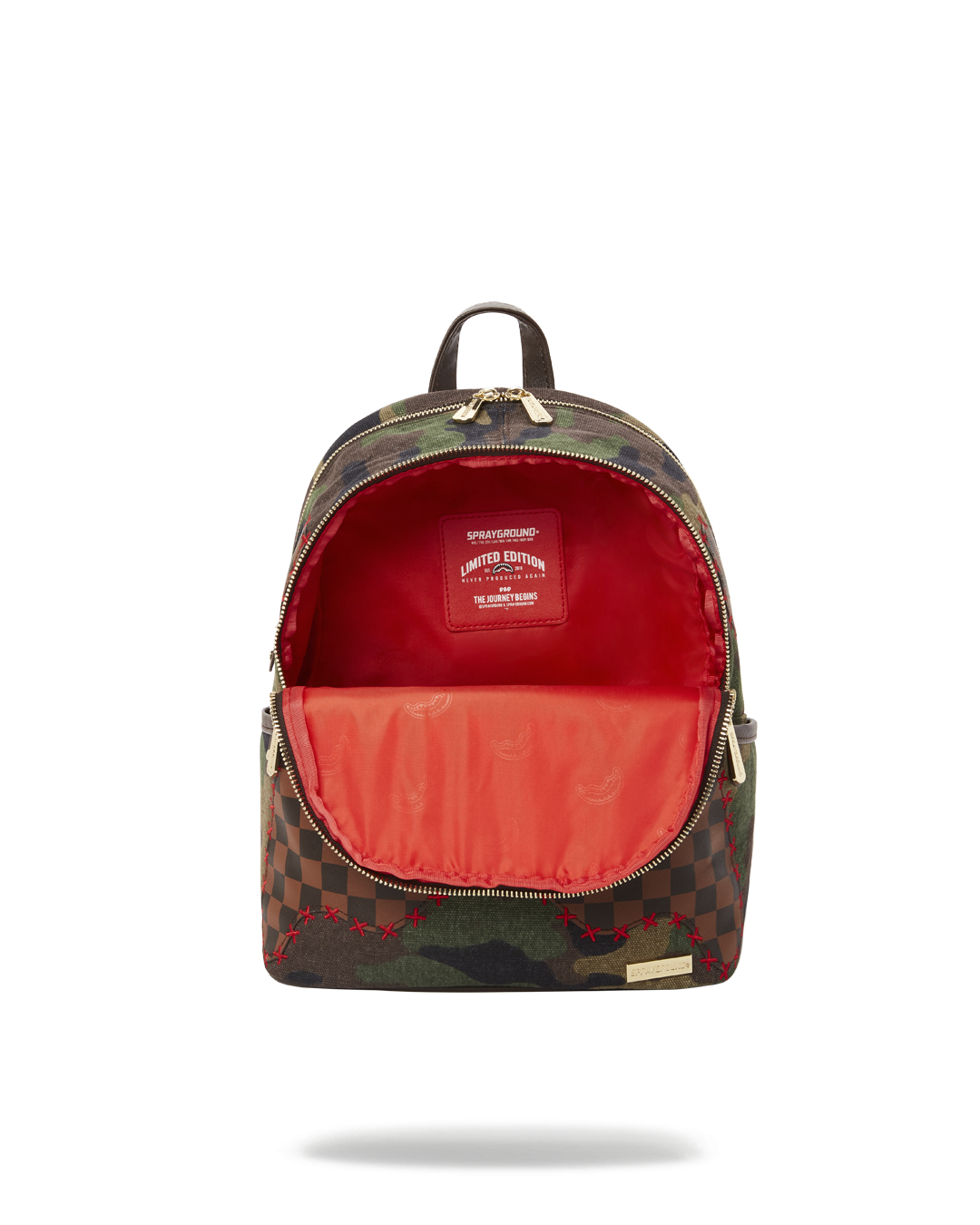 Dimensions: 10″ x 5″ x 11.5″ • Two large main zippered compartments • Side pockets • Zippered Stash pocket • Adjustable straps for custom sizing • Gold zippers with metal hardware