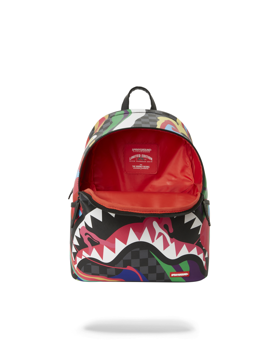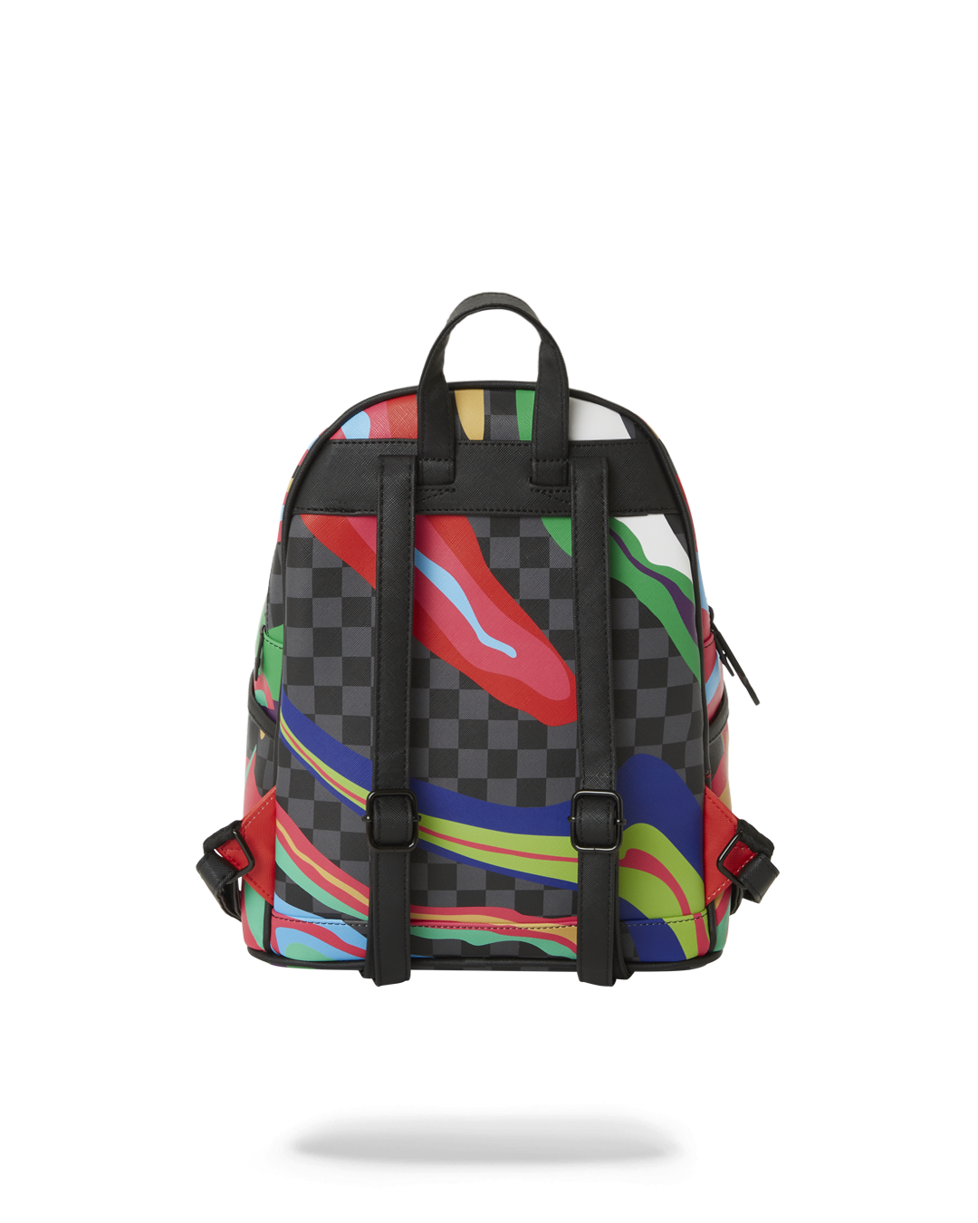 Dimensions: 10″ x 5″ x 11.5″ • Two large main zippered compartments • Side pockets • Zippered Stash pocket • Adjustable straps for custom sizing • Gold zippers with metal hardware
