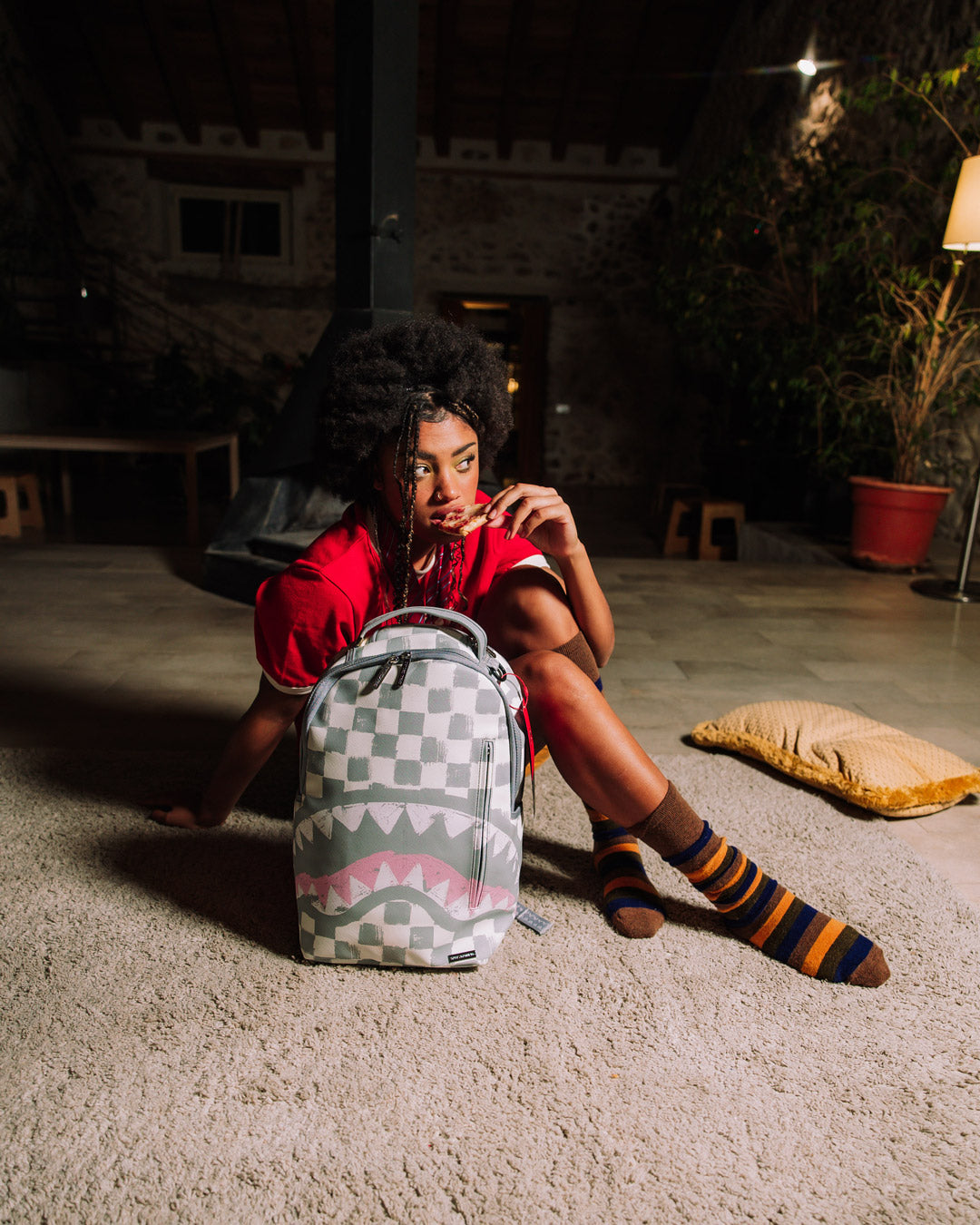 Dimensions: 18″ x 6″ x 11.5″ • Front zipper pocket • Side pockets • Zippered Stash pocket • Separate velour sunglass compartment • Ergonomic mesh back padding • Adjustable Straps for custom sizing • Gold zippers with metal hardware • Metal “Sprayground Authentic” badge • Slide through back sleeve connects to carry-on luggage to free your hands