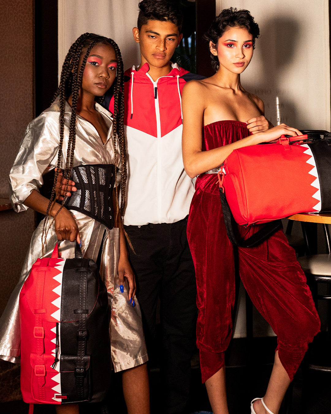 Dimensions: 20″ x 10″ x 10.75″ ? Metal zipper pocket ? Back Zippers ? Zippered sneaker pocket ? gold zippers ? Adjustable Straps for custom sizing ? Metal Zippers with Metal Hardware