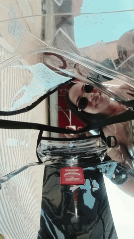 Clear PVC bag with cut and sew shark mouth with VSM patterned trims/binding