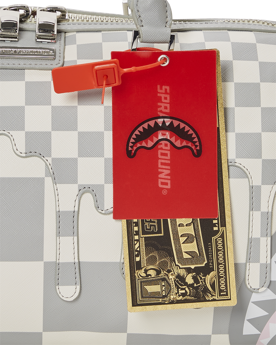 Dimensions: 8″ x 7.5″ x 13″ • Metal zipper pocket• Back Zippers •Zippered sneaker pocket • gold zippers • Adjustable Straps for custom sizing •Metal Zippers with Metal Hardware • bag of Sprayground money