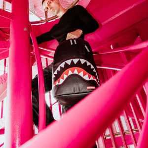 [split] PRODUCT DETAILS Exterior Dimensions: 18″ x 6″ x 11.5″ • Front zipper pocket • Side pockets • Zippered Stash pocket • Separate velour sunglass compartment • Ergonomic mesh back padding • Adjustable Straps for custom sizing • Gold zippers with metal hardware • Metal “Sprayground Authentic” badge • Slide through back sleeve connects to…